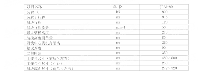 JC23-80T可倾冲床参数: