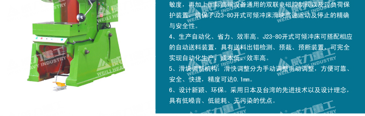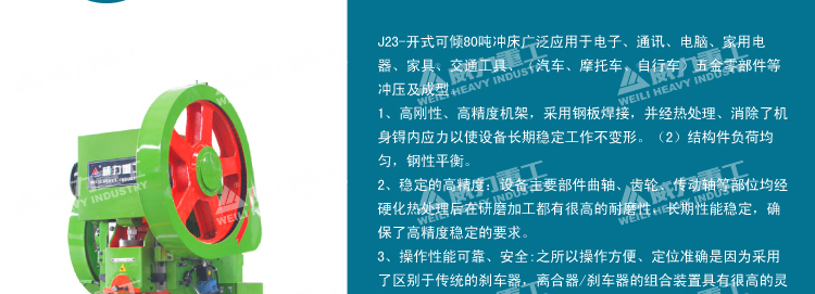 80吨冲床C型开式机身,方便装模与较大尺寸材料的加工。